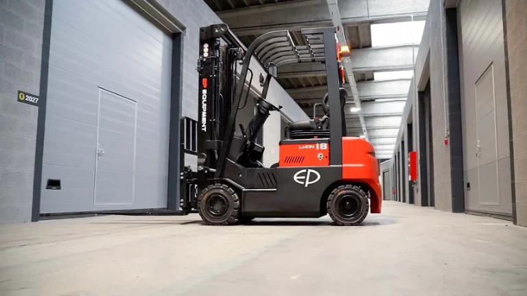 Ideal for Narrow Aisles: This compact forklift truck is designed to navigate confined spaces with ease, thanks to the small turning radius.