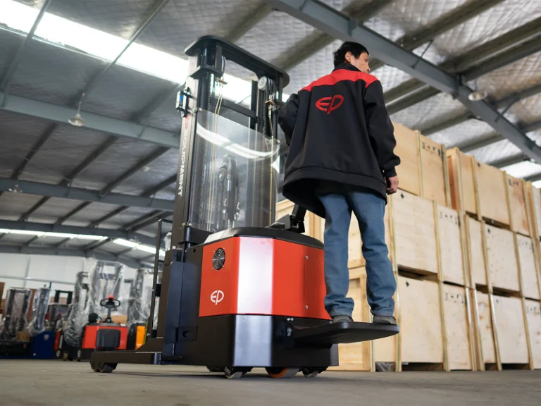 The CQE12R/15R series delivers reliable stacking with lift heights up to 5.5 meters and load capacities of 1.2 or 1.5 tons. Equipped with an AC traction motor, electronic power steering (EPS), and proportional hydraulic controls, it ensures smooth, precise, and efficient operations in tight warehouse spaces. The CQE12R/15R is the ideal solution for logistics hubs, warehouses, and retail distribution centers with space constraints. Its narrow chassis (850–1018 mm width) and tight turning radius (1597–1697 mm) make it effective in confined aisles, while the reach mast system enables safe pallet stacking at high levels. With polyurethane wheels, optional cold storage configuration, and side-shift attachments, it adapts to various industries requiring flexible, reliable material handling.