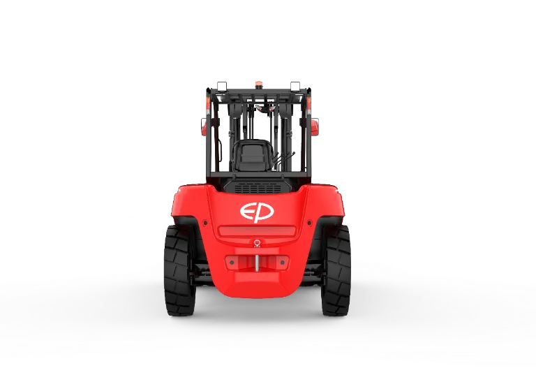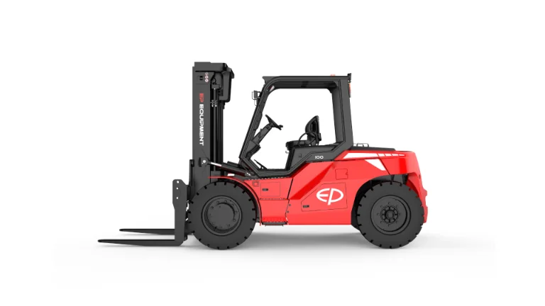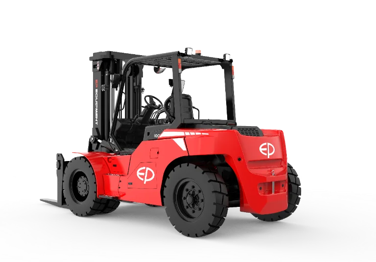 The EP EFL1003 represents the pinnacle of electric forklift power. Its 96 V / 560 Ah Li-ion battery and PMSM dual-drive system offer smooth acceleration, rapid torque response, and extended runtime with fast 1C charging. The triple cooling configuration-two water-cooled circuits for motor and battery plus oil cooling for hydraulics-ensures long-term reliability even in extreme temperatures. A hydraulic buffering mast provides precise, low-noise lifting, while the VCU control system guarantees real-time monitoring, turn-speed management, and automatic safety protections. Built for endurance, sustainability, and operator comfort, the EFL1003 redefines what heavy-duty electric forklifts can do.