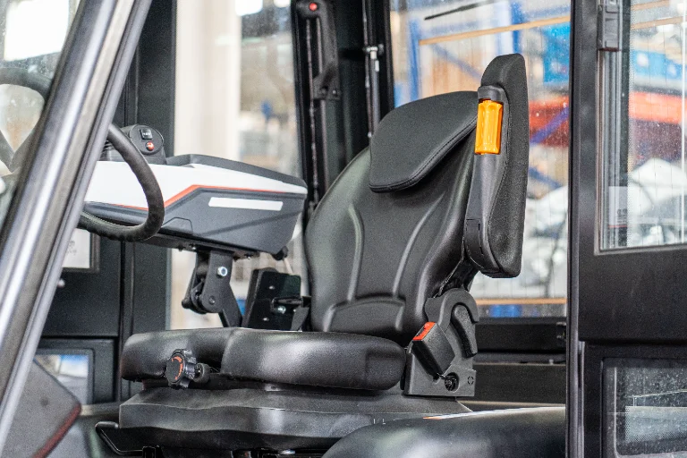 Operator comfort is central to the design: a spacious cabin with suspension seat and OPS system, fingertip controls, and clear visibility through a wide-view mast. The EFL1203-HV also features an advanced LED lighting package, rear camera with LCD display, and optional full air-conditioned cabin for all-weather operation. Combining power, precision, and sustainability, the EFL1203-HV is the ultimate electric alternative to large diesel forklifts.