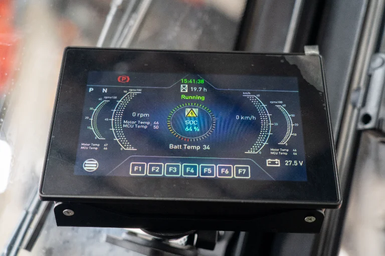 The truck’s high-voltage configuration reduces current flow and heat generation, ensuring long-lasting component life and shorter charging times. Dual cooling systems-water-cooled for battery and motor, oil-cooled for hydraulics-maintain stable operation under extreme workloads.