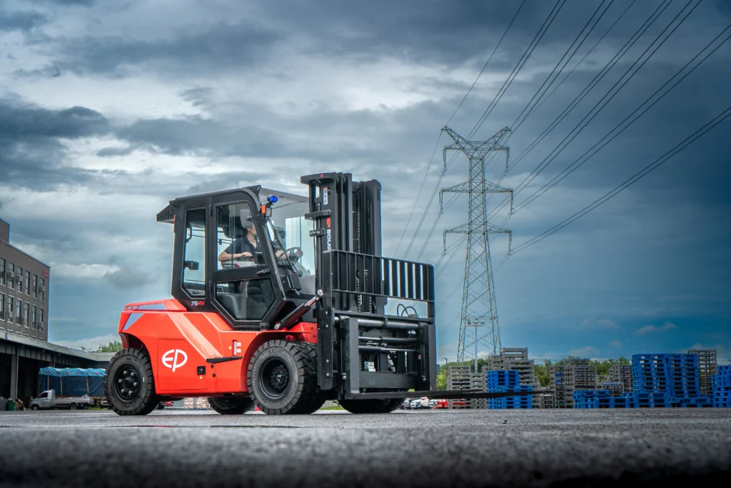 The EFL503–703HV Series embodies EP’s innovation in sustainable heavy lifting. Powered by a 309 V high-voltage LFP battery, it provides up to 15% energy savings compared with traditional AC systems, while maintaining strong torque and rapid acceleration. Its high-voltage PMSM drive (60 kW + 2× 27.8 kW lift motors) ensures consistent performance and smoother control across long operating cycles.