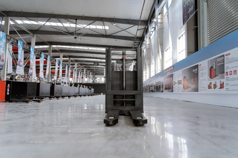The KSi201 embodies EP Equipment’s next-generation approach to double-deck logistics. Its Li-ion technology guarantees zero maintenance, rapid charging, and extended service life, while the AC traction motor ensures powerful performance and reliability. Safety and control are enhanced with automatic speed reduction on turns and electromagnetic braking. Operators benefit from a protective steel shell, ergonomic tiller, vibration-free platform, and intuitive controls. With optional add-ons such as telematics, operator ID systems, LED working lights, and overhead guard, the KSi201 adapts to the toughest demands of modern intralogistics.