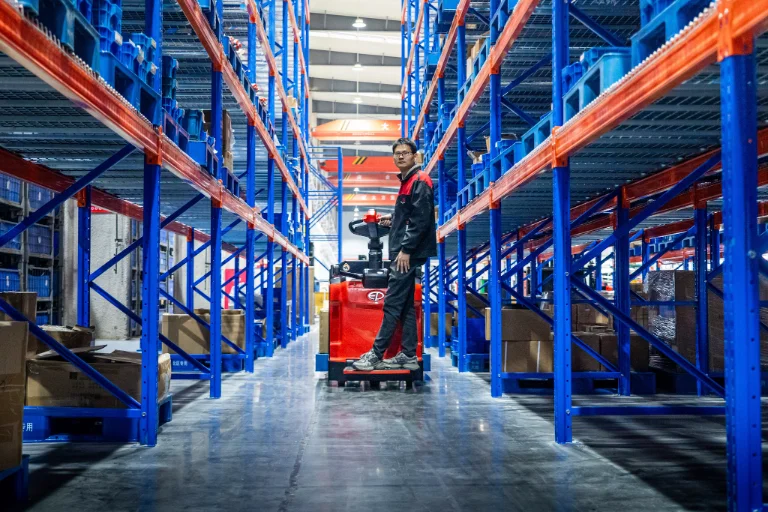 The RPL 20 PRO is a professional heavy-duty ride-on pallet truck equipped with a 2000 kg load capacity and foldable operator platform. Designed for intensive warehouse and logistics operations, it delivers unmatched comfort and control thanks to EP’s Li-ion battery system, electric power steering, and height-adjustable tiller head. Its compact 652 mm chassis and powerful 3.0 kW drive motor make it ideal for both long-distance and confined-space handling.