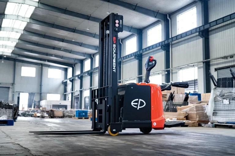 Available in 800 kg, 1200 kg, and 1500 kg versions, the RSC Series combines the flexibility of a counterbalance design with the efficiency of electric drive. Featuring a compact chassis and turning radii from 1250 mm to 1707 mm, these stackers perform exceptionally in narrow aisles. The proportional lifting system allows precise pallet placement, while optional lithium batteries provide extended runtime and reduced maintenance. The RSC Series is designed for handling a wide variety of pallets, boxes, and cages in warehouses, factories, and distribution centers. Thanks to its counterbalance design, it can lift closed pallets and irregular loads that standard straddle stackers cannot handle. With foldable platform and arm guards, it is also suitable for longer travel distances, while the 116 mm ground clearance ensures smooth operation even on uneven surfaces.