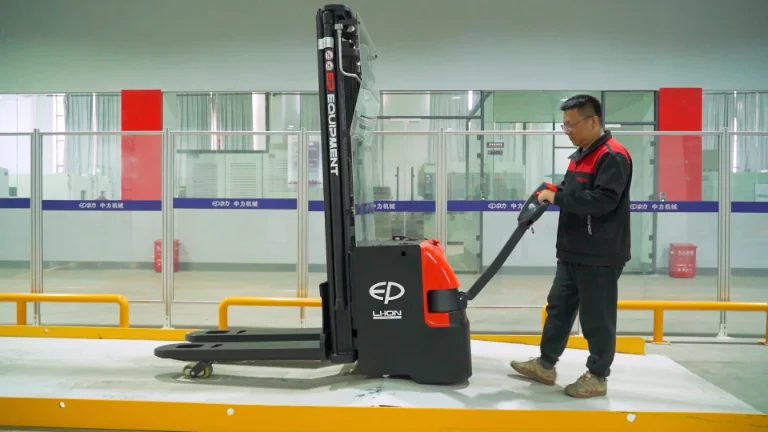 The WSA161i embodies EP Equipment’s commitment to performance, safety, and operator convenience. Its initial lift and strong support arms enable efficient double decking, while fast lifting speeds and proportional control minimize turnover cycles. The stacker is fully designed around Li-ion technology, ensuring rapid charging, long runtime, and reduced maintenance costs. Operators benefit from a modern design with integrated storage space, USB outlet for devices, and an ergonomic tiller for precise control. Optional features such as higher-capacity batteries, external chargers, telematics, and cold storage configuration make the WSA161i a flexible, future-ready choice for heavy-duty warehouse applications.