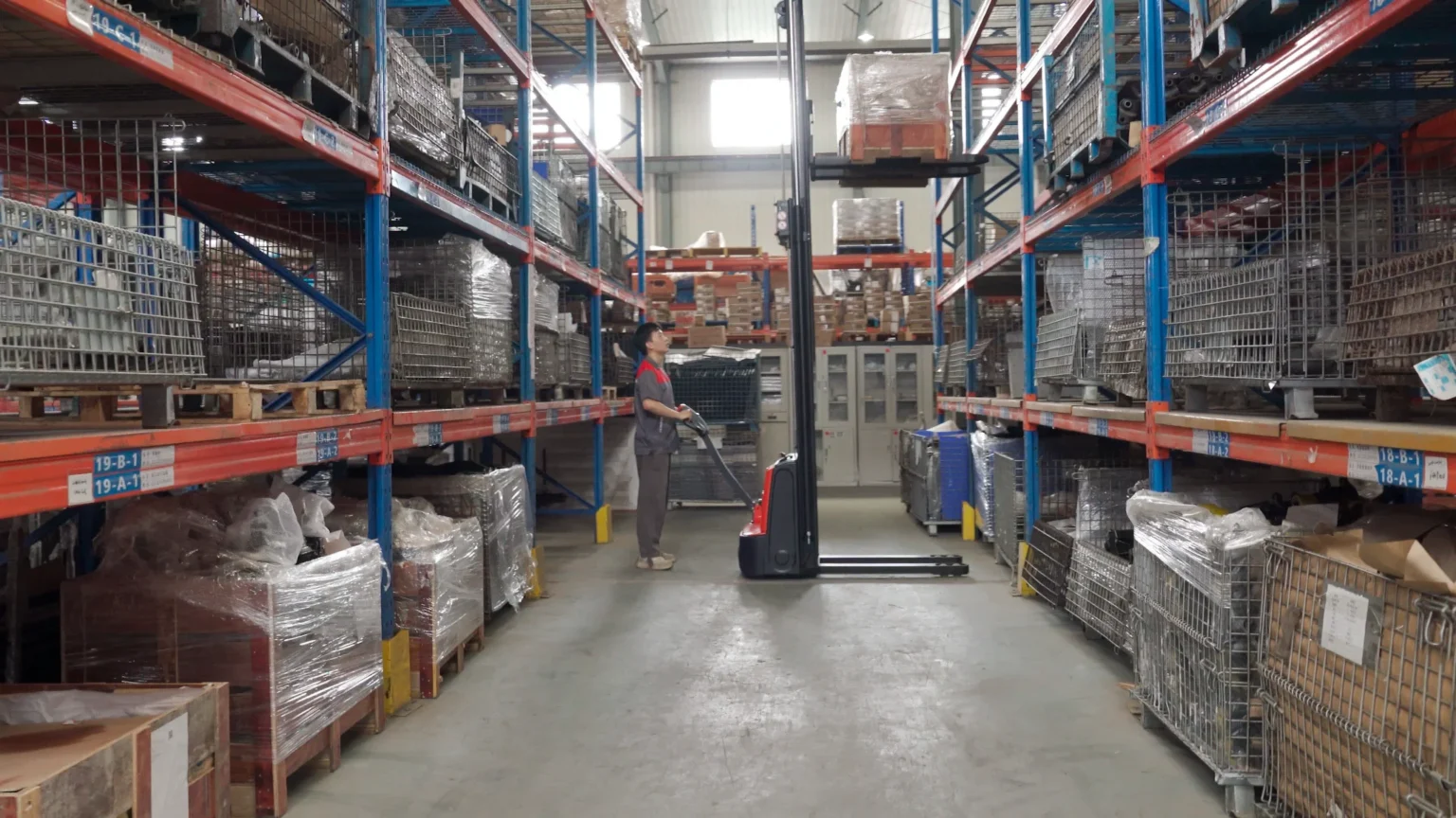 The DS3 Electric Pedestrian Stacker from EP Equipment offers exceptional control, durability, and efficiency for everyday warehouse operations. With a